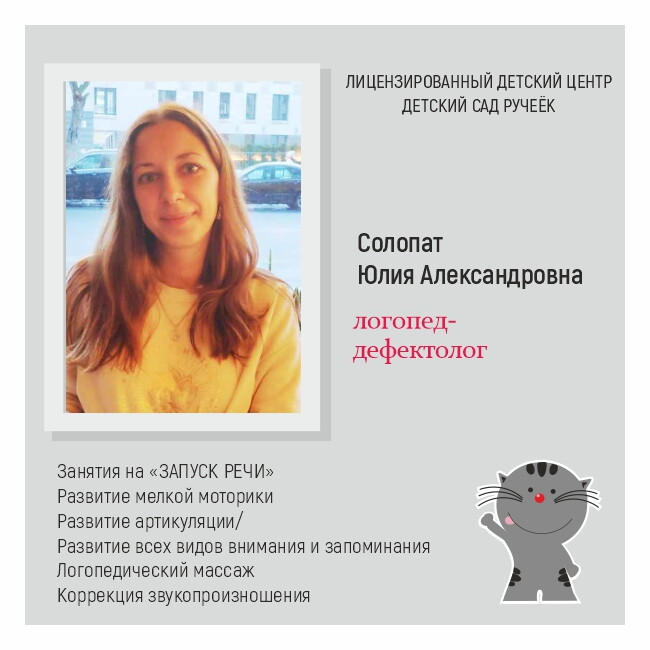 В центре работает очень хороший логопед-дефектолог Юлия Александровна Солопат, которая все толково объясняет, плюс трехлетний ребенок ее слушается. Вообще, уроки проходят в игровой форме, так как малыш сейчас не особо усидчивый, то есть к нему был проявлен индивидуальный подход. Но самое главное, что ребенок ходит на занятия с удовольствием, а меня, как маму, устраивает время обучения, все достаточно удобно.